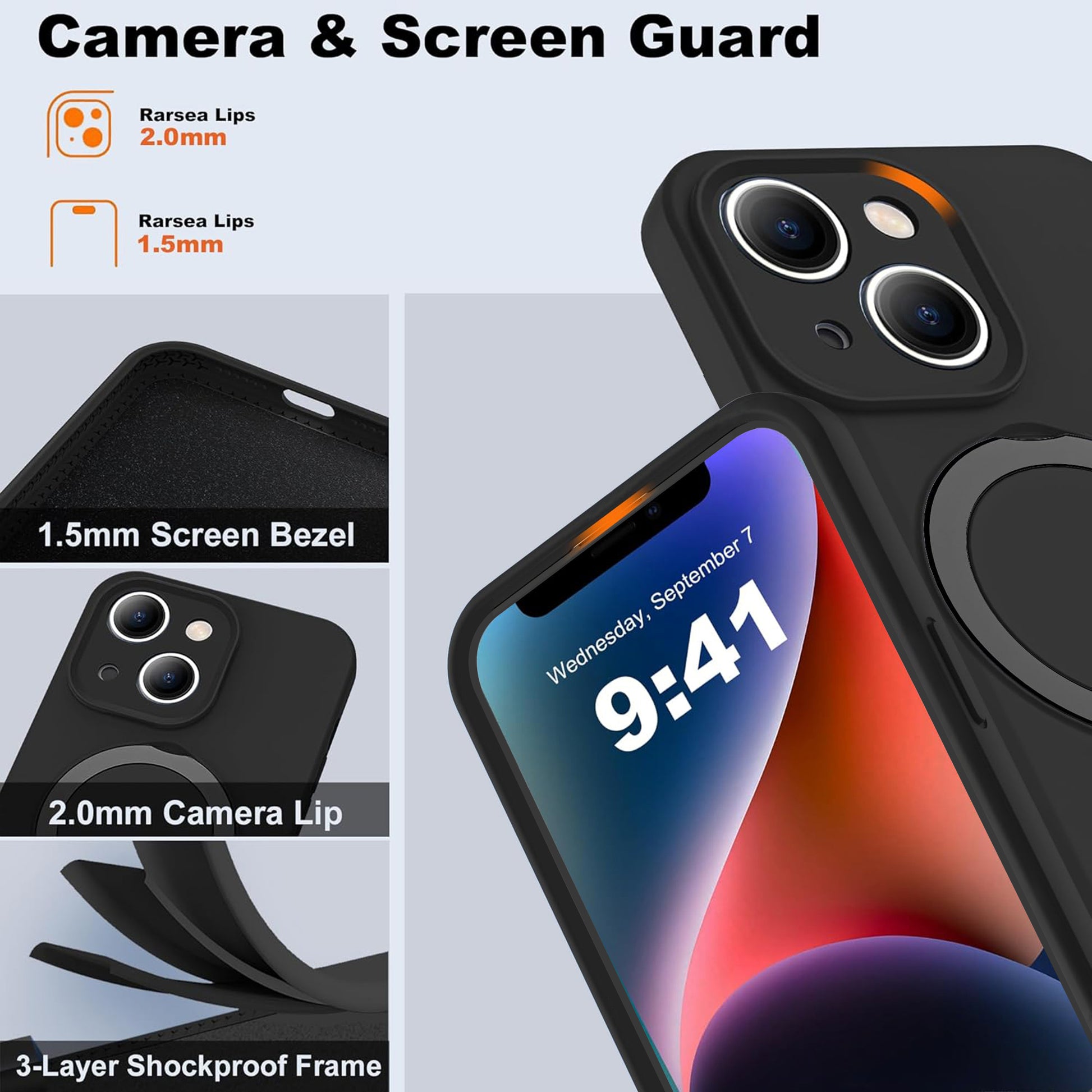 - 【All-In-One Front & Rear Protection】Unique Camera Guard frame and 2mm raised lips above the screen can keep dust away and prevent scratches, allowing your iPhone 14 to fully immersed into the magnetic case.